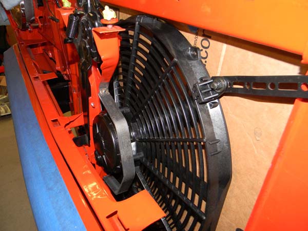 The snub nose of the '70-'72 Duster doesn't leave much room between the grille and radiator for just any electric pusher fan.