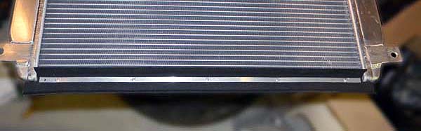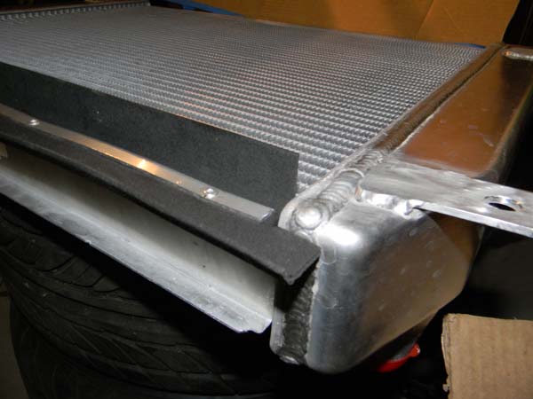 With 4 mounting tabs welded to the tanks (by my buddies at Spyder Industries) I turned my attention to sealing the gap between the core itself, which is not flush with the tanks (ie: the tanks are thicker than the core), and the core support. Air is going to take the path of least resistance. I want to force it through the core, not let it travel around the core and blow through gaps at the top and bottom.