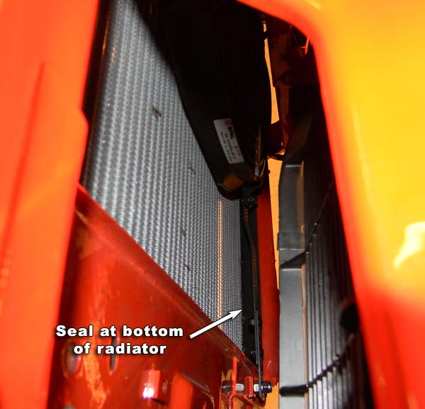 It's difficult to see but with everything installed and looking down behind the grille you can see the seal blocks an otherwise large gap that would allow air to flow freely around.