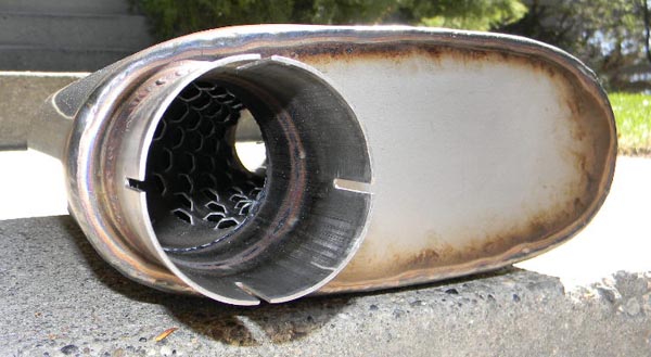 By turning it around and installing it "backwards" you can change the tone of the exhaust. Others have done this and I too found the sound more pleasing. It's definitely louder and approaches the sound of open exhaust.